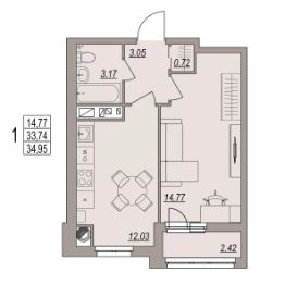 Общая площадь34,95 м²