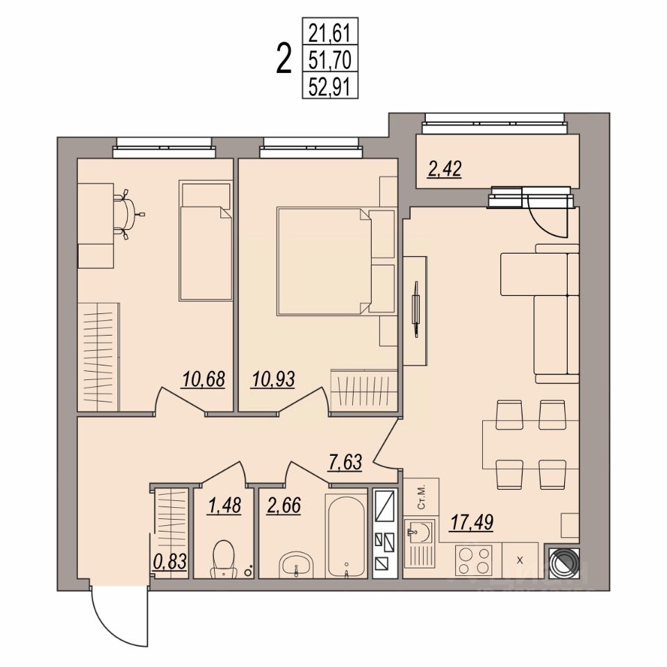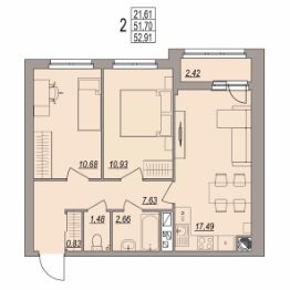 Общая площадь52,91 м²