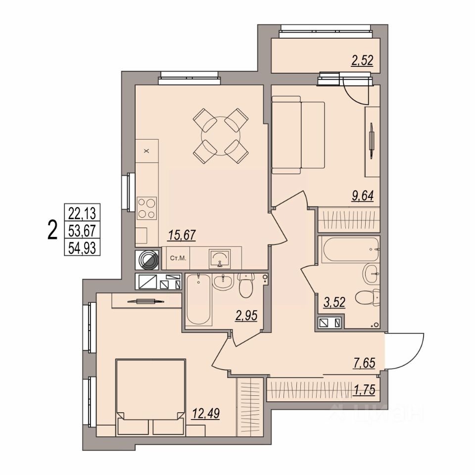 54,93 м²