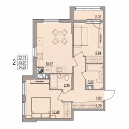 Продается 2-комн. квартира, 54,93 м²