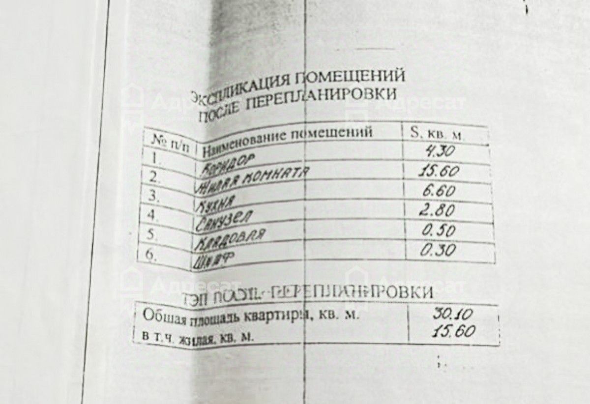 общая площадь составляет 30,1 кв. м,