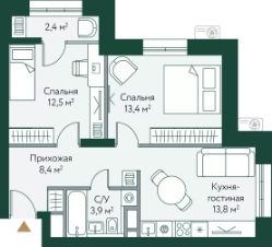 Общая площадь54,4 м²