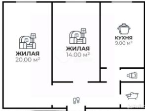 Раздельные комнаты: 19.2 + 14.1 метров