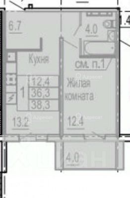 Общая площадь 36 кв.м. Жилая 13 кв.м. Кухня 13 кв.м.