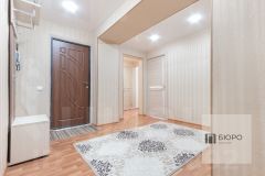 Общая площадь с учетом балкона: 75.4 кв.м. Планировка включает: 3 изолированные комнаты (17.9, 13.3 и 11.5 кв.м), кухню 7.9 кв.м, вместительную гардеробную, оснащенную мебелью и зеркалами, раздельный санузел, остекленный и отделанный балкон 3.3 кв.м, просторный холл 10.2 кв.м.