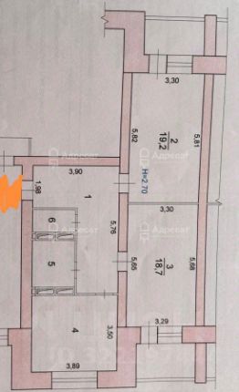 Высота потолка - 2, 7 м.