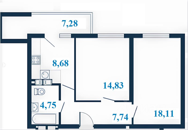 57,75 м²