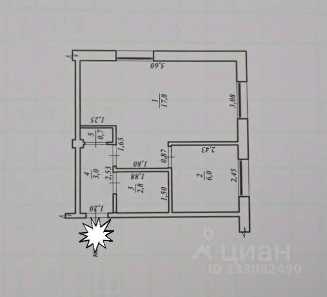Общая площадь: 30.3 м², просторная комната позволит вам обустроить её по своему вкусу.