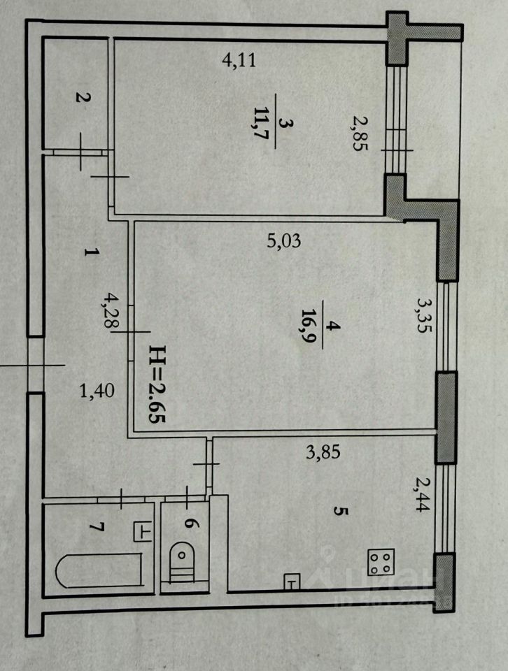 Квартира состоит из 2х изолированных жилых комнаты 11,87 кв.м. и 16,9 кв.м. соответственно, кухни 8,6 кв.м., кладовой 2 кв.м. и раздельного с/у (2,6 кв.м. и 1 кв.м.)