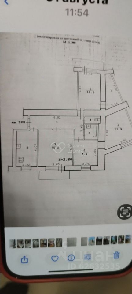 Комнаты: 15.6 + 7.9 + 11.9 + 11.3 метров