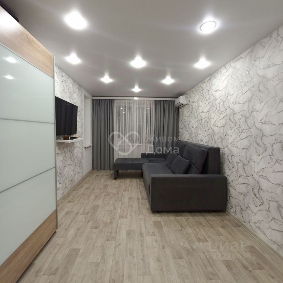 Квартира в отличном состоянии. Натяжные потолки. Пластиковые окна. На полу линолеум. Раздельный санузел. Есть застекленный пластиком балкон