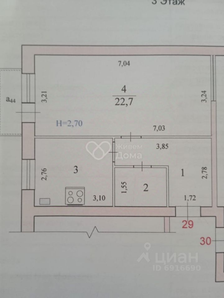 22,7 м²