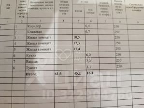 Брежневская планировка: общая 61.60 / жилая 45.20 / кухня 6.00 кв. метров.