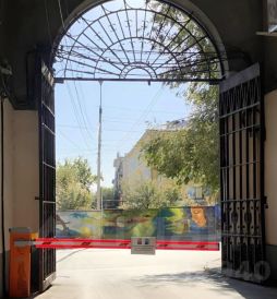 Въезд во двор оборудован шлагбаумом.