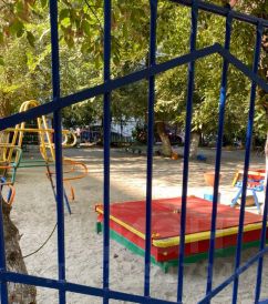 Ухоженный двор с детской площадкой.