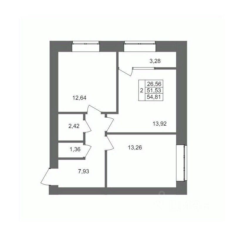 Общая площадь54,81 м²