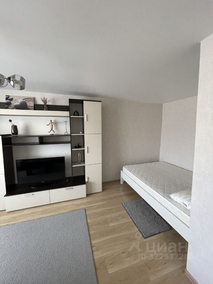 Просторная комната легко зонируется под гостиную и спальню.