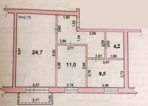 Раздельные комнаты: 24.7 + 11 метров