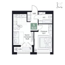 Общая площадь38,54 м²