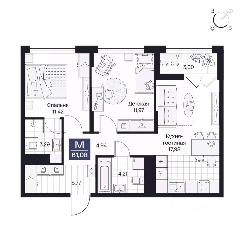 Общая площадь61,08 м²