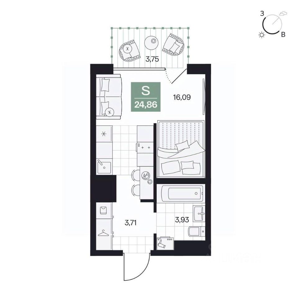 Общая площадь24,86 м²