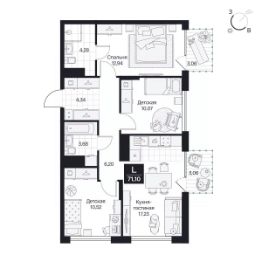 Общая площадь71,1 м²