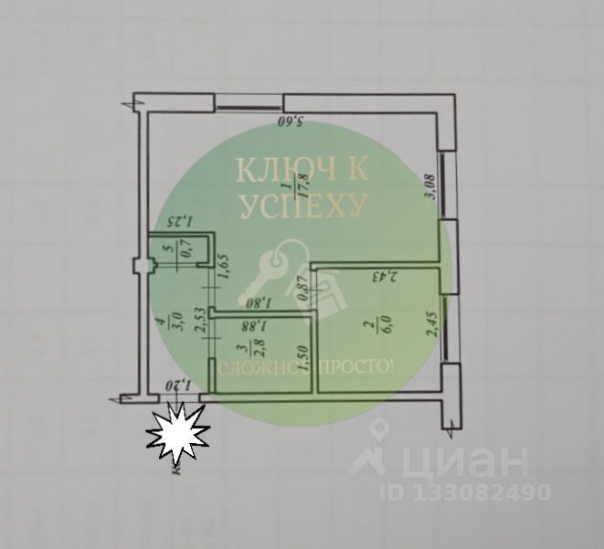 Общая площадь: 30.3 м², просторная комната позволит вам обустроить её по своему вкусу.