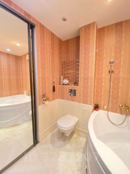 Квартира в отличном состоянии, с дизайнерским ремонтом из высококачественных материалов. Натяжные потолки. Пластиковые окна. Кухня квадратной формы 10 м2. Фартук из натуральной мозаики. Ванная комната больше 5 м2. Теплый пол, итальянская плитка, встроенный шкаф. Все стены идеально ровные, углы выведены под 90 градусов, по дизайну частично с декоративной штукатуркой. Двери из массива. Еврокарнизы. Сплит-системы. В комнатах паркетные полы, на кухне и в коридоре керамогранит. Лоджия просторная, с теплым полом и встроенным глубоким шкафом. Обустроена вместительная гардеробная.