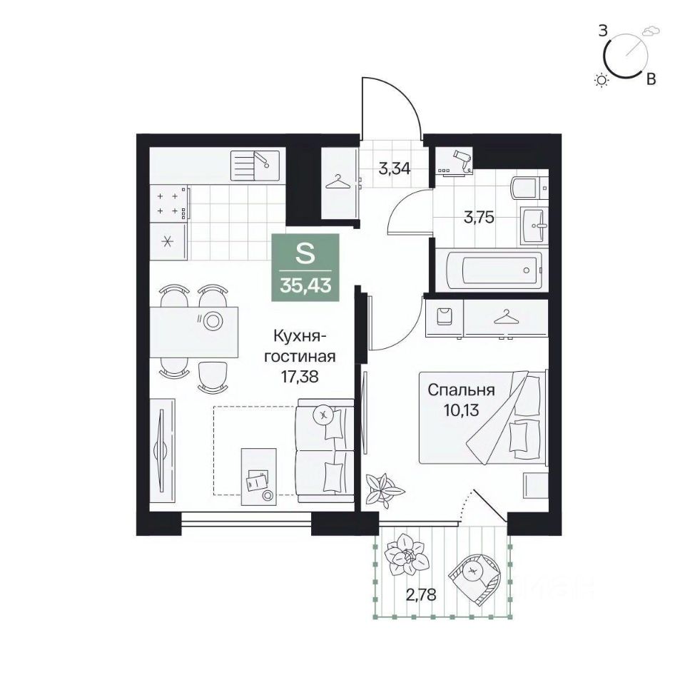 Общая площадь35,43 м²