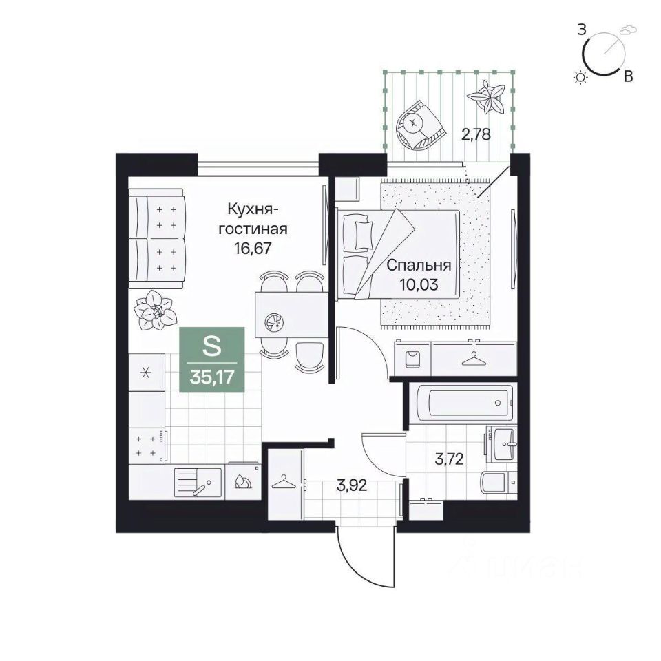 Общая площадь35,17 м²