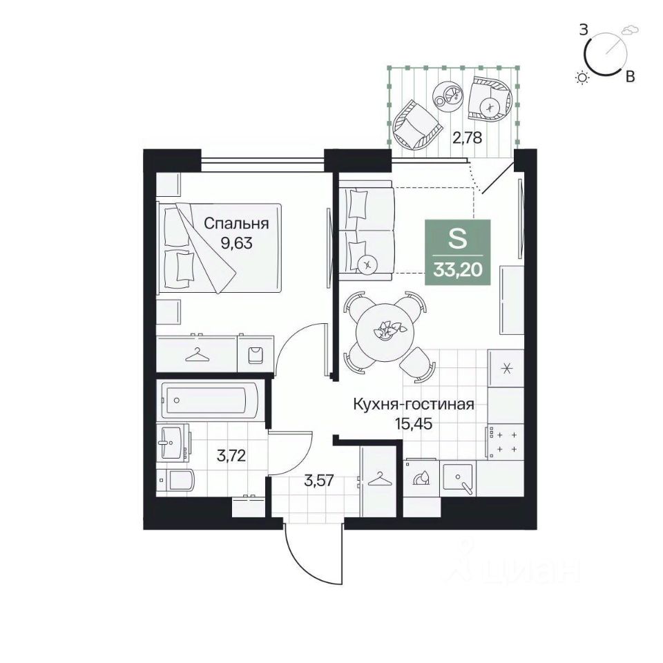 Общая площадь33,2 м²