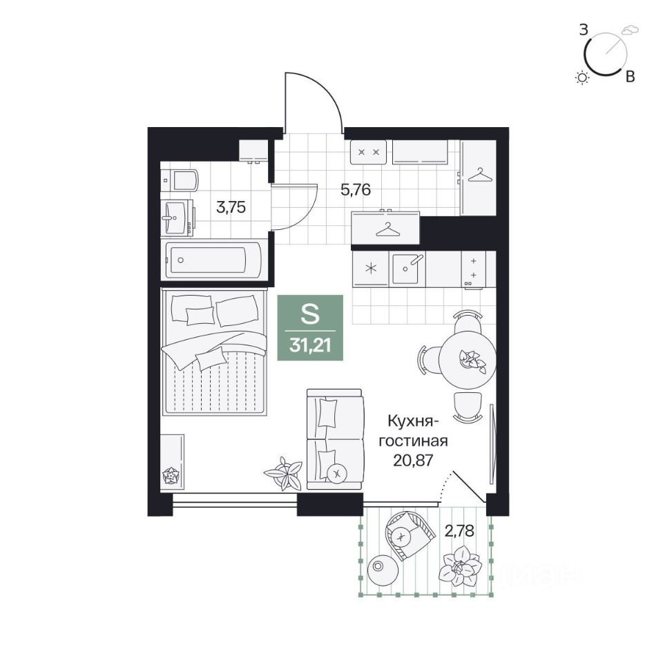 Общая площадь31,21 м²