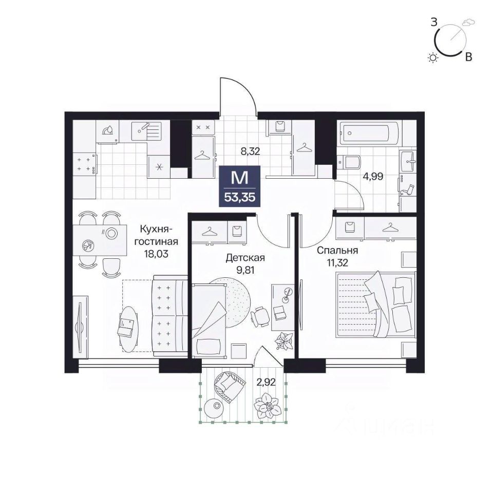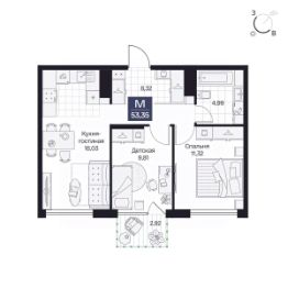 Общая площадь53,35 м²
