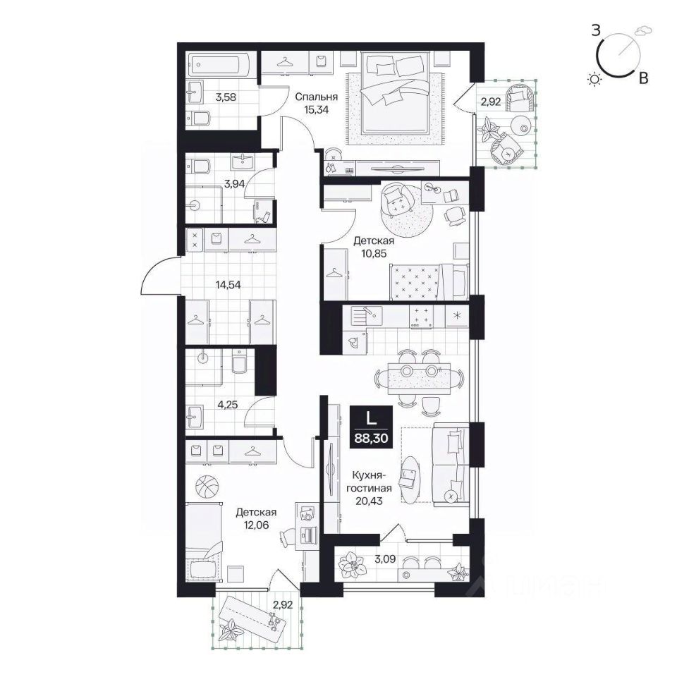 Общая площадь88,3 м²