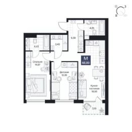 Общая площадь68,8 м²