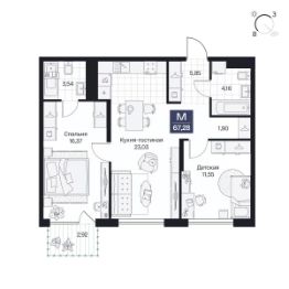 Общая площадь67,28 м²