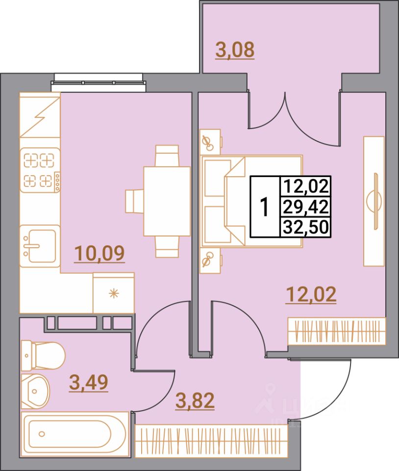 Общая площадь32,5 м²