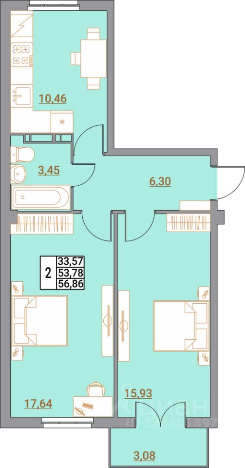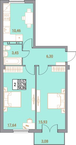 Общая площадь56,86 м²