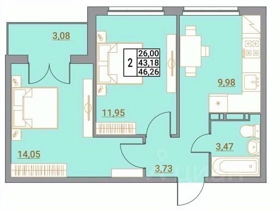 Общая площадь46,26 м²
