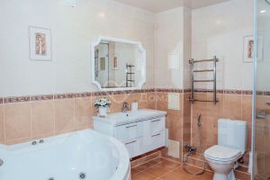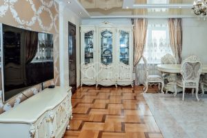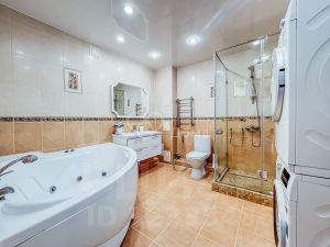 Квартира в отличном состоянии. Натяжные, дизайнерские потолки. Пластиковые окна. На полу паркетная доска, сантехника Grоне. Отдельная душевая кабина и джакузи с гидромассажем. Отдельные помещения для гардеробной и кладовой. Отдельная зона для верхней одежды. Установлена сигнализация. Есть 2 застекленных пластиком лоджии