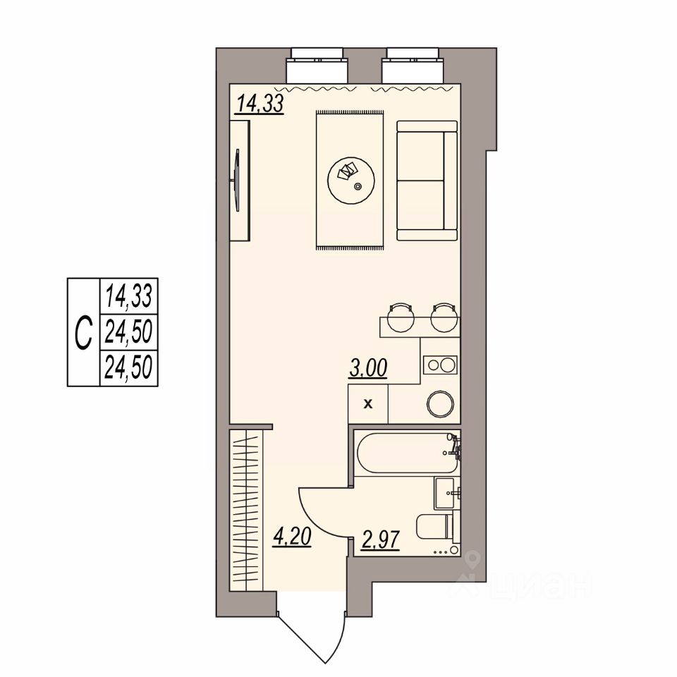 Высота потолка 3 м;