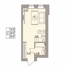 Общая площадь24,47 м²
