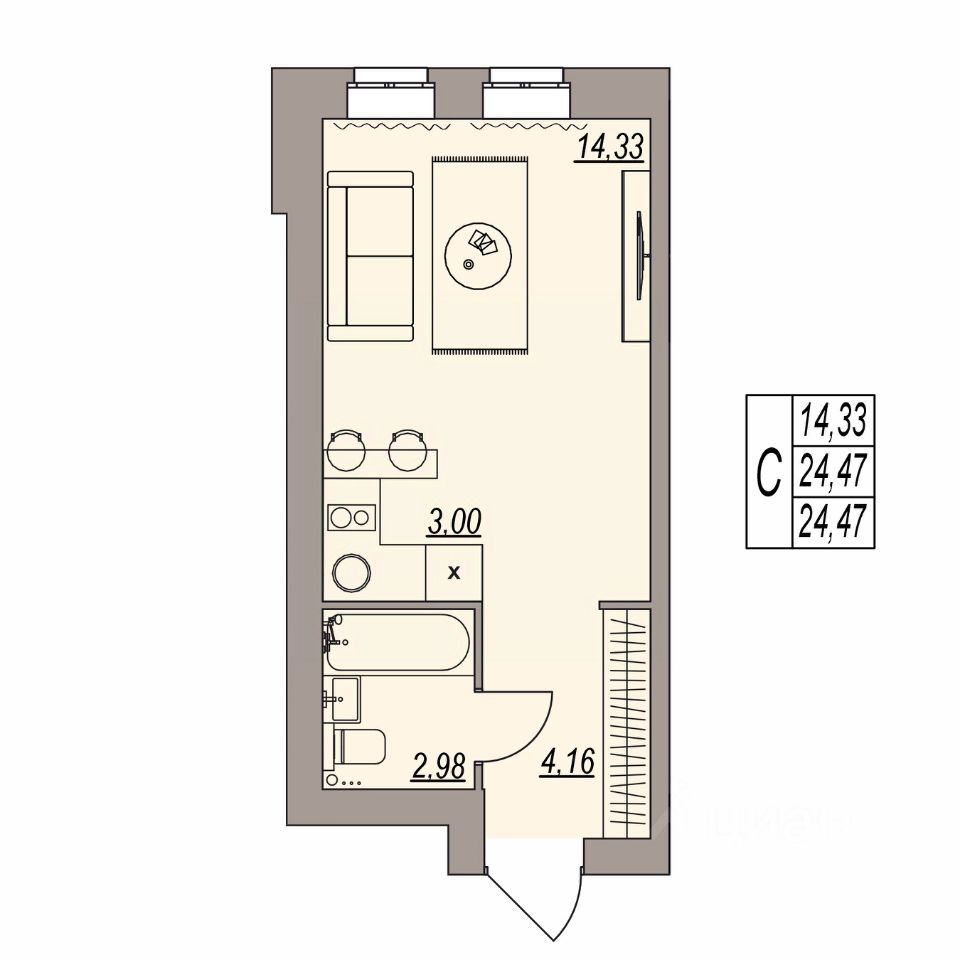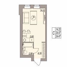 Общая площадь24,47 м²