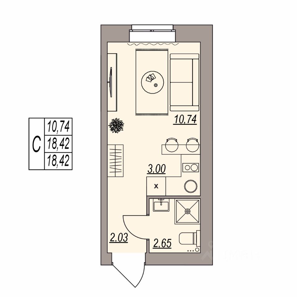 Общая площадь18,42 м²