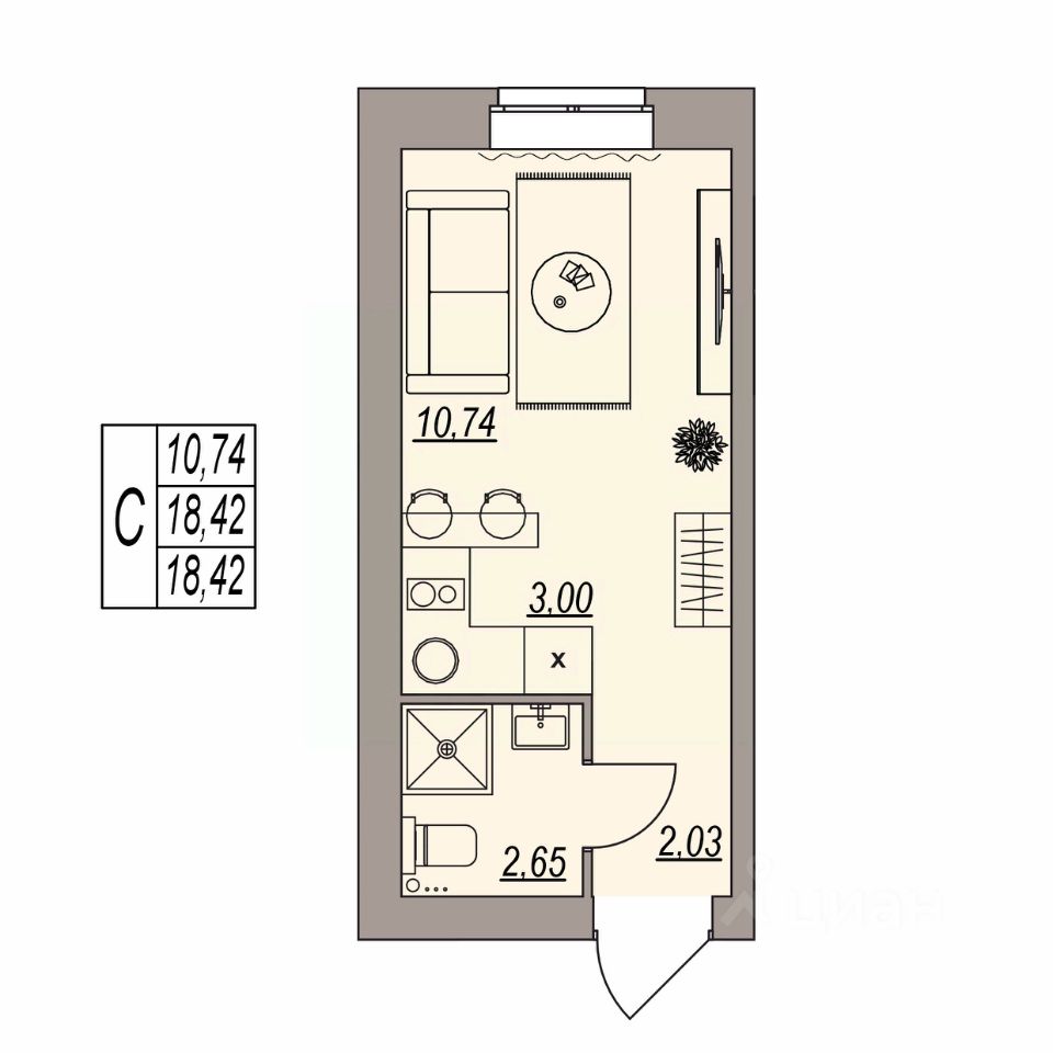 Высота потолка 3 м;
