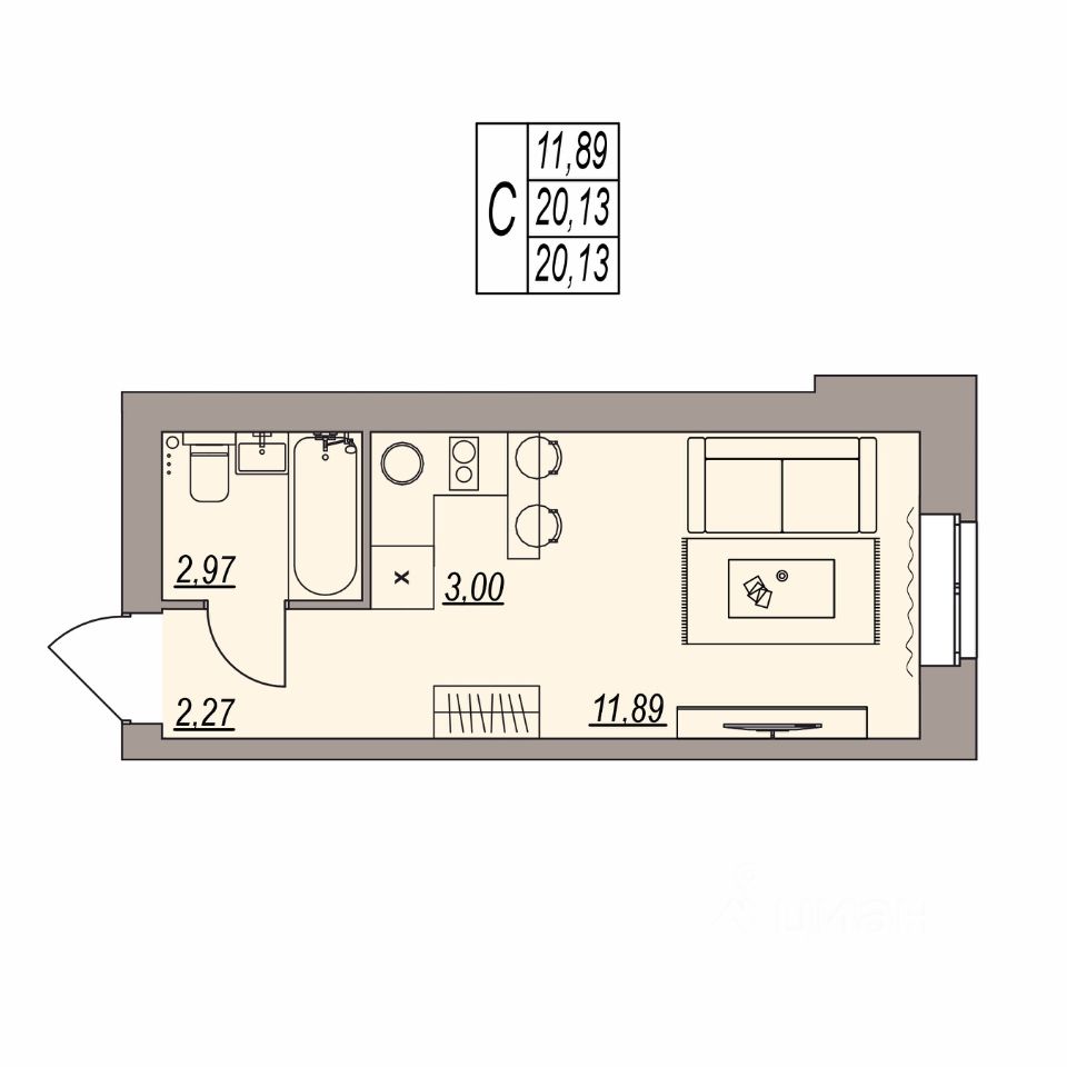 Высота потолка 3 м;