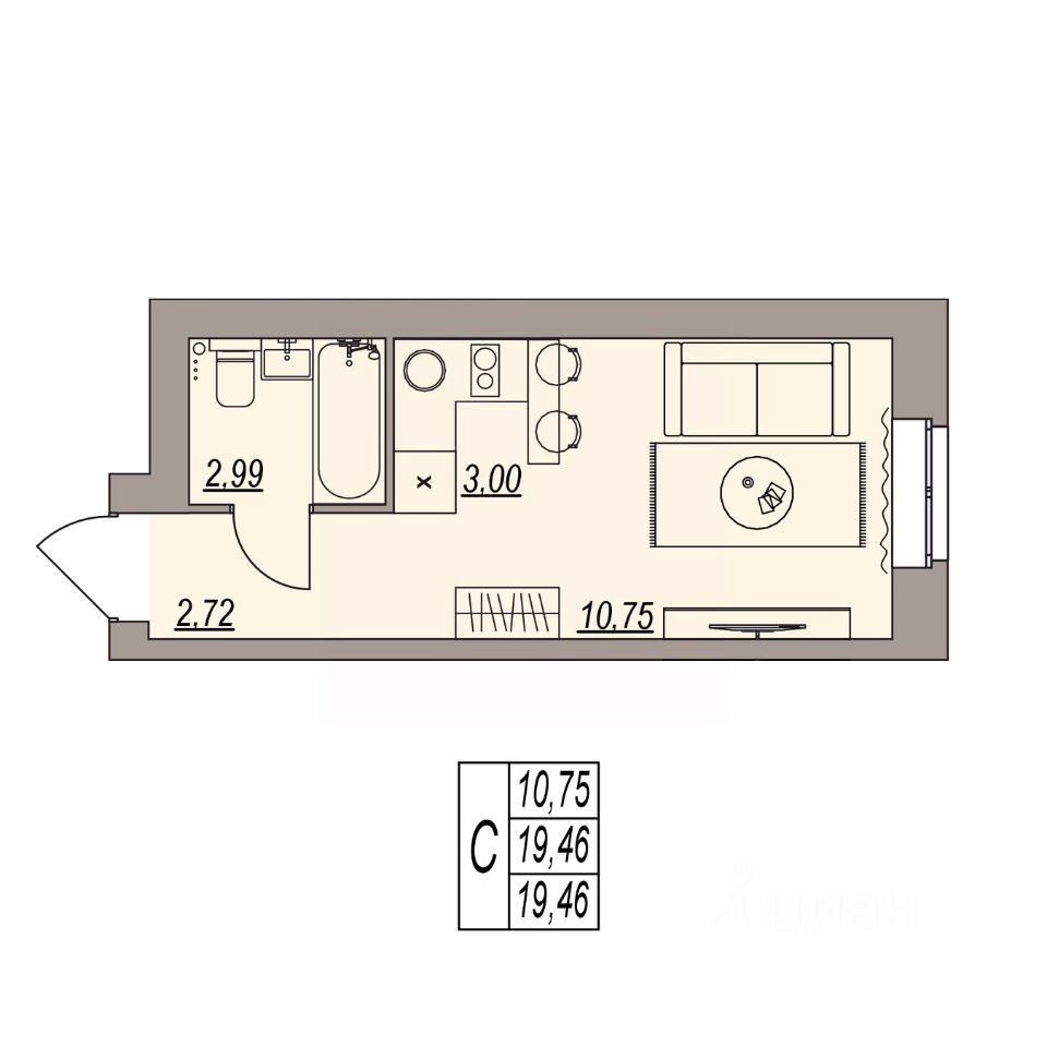 Высота потолка 3 м;