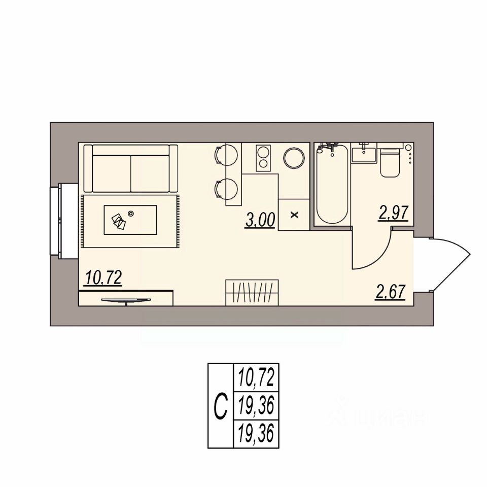 Высота потолка 3 м;