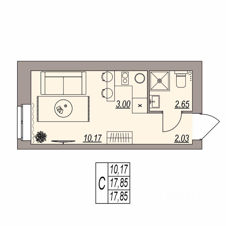Высота потолка 3 м;