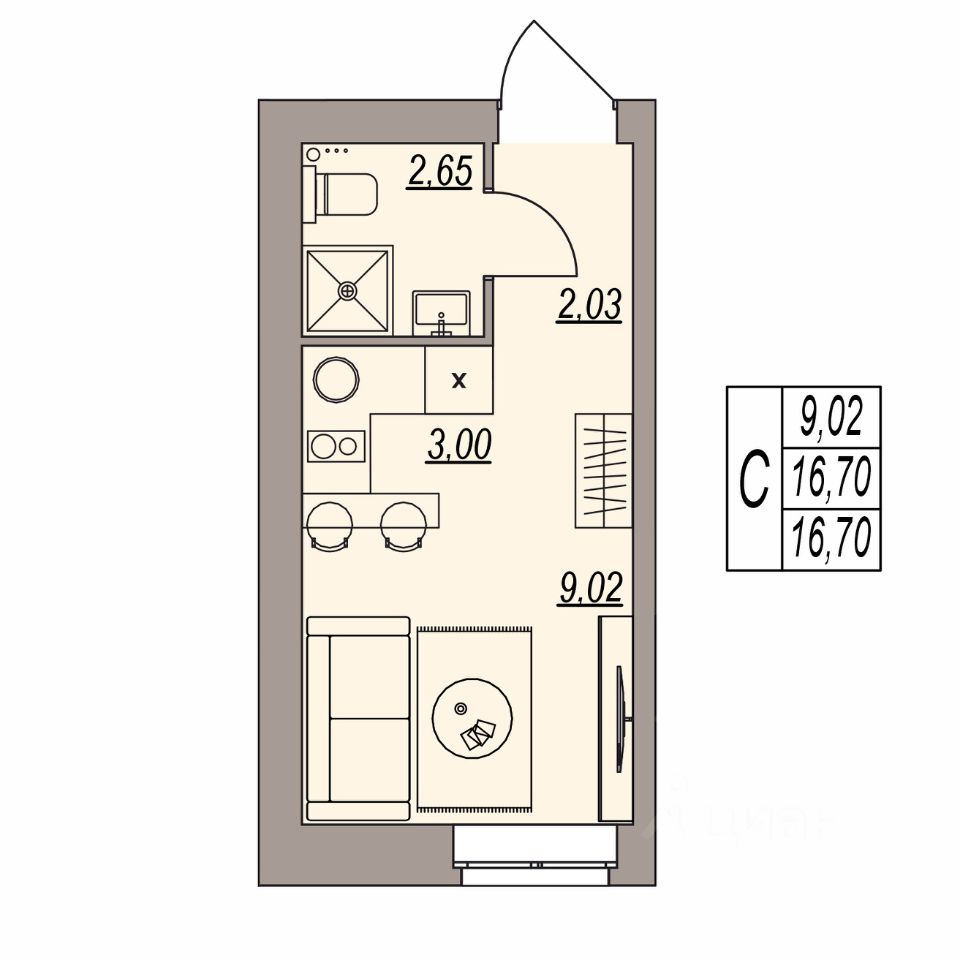 Высота потолка 3 м;